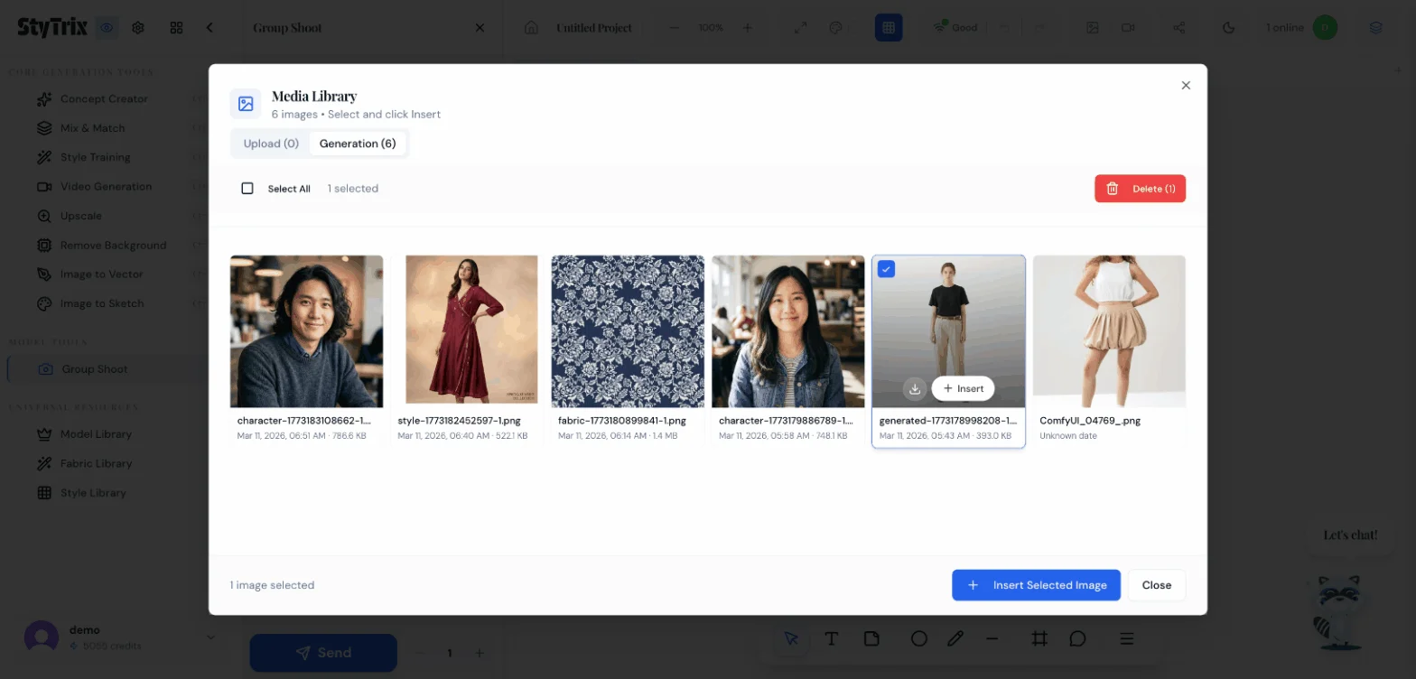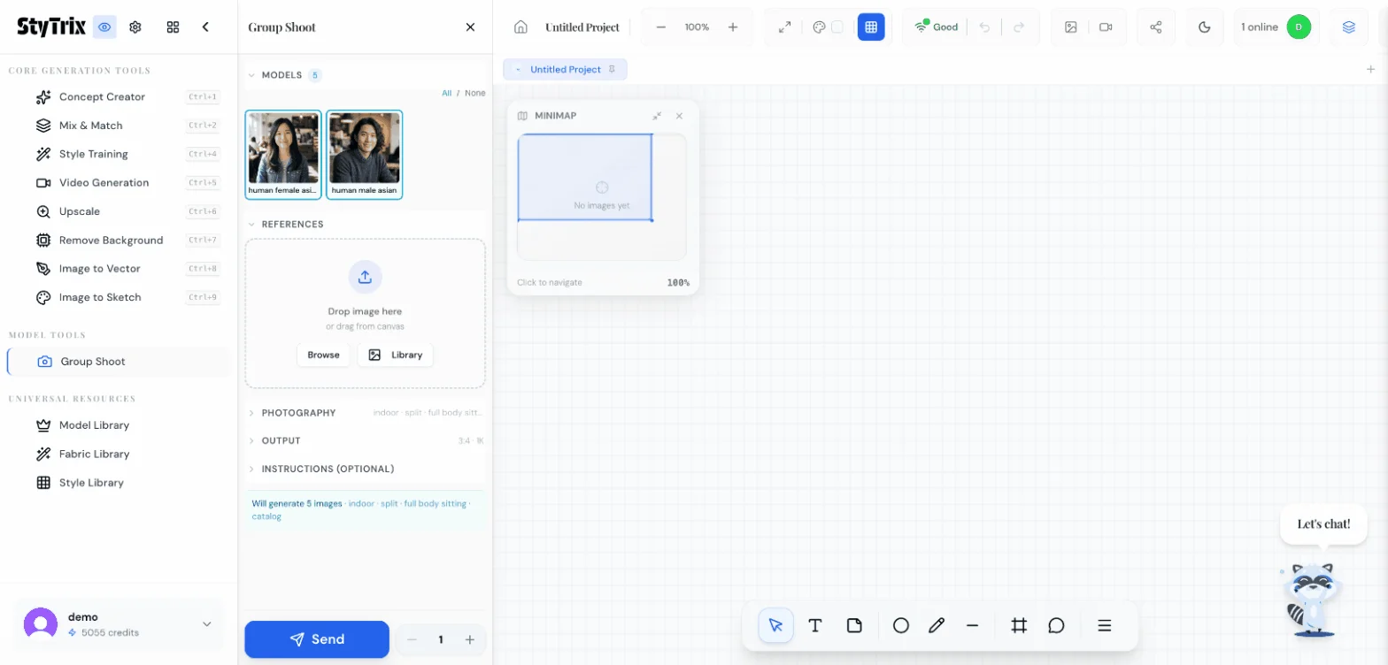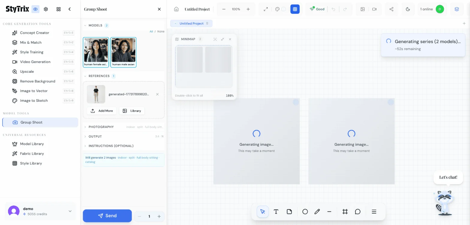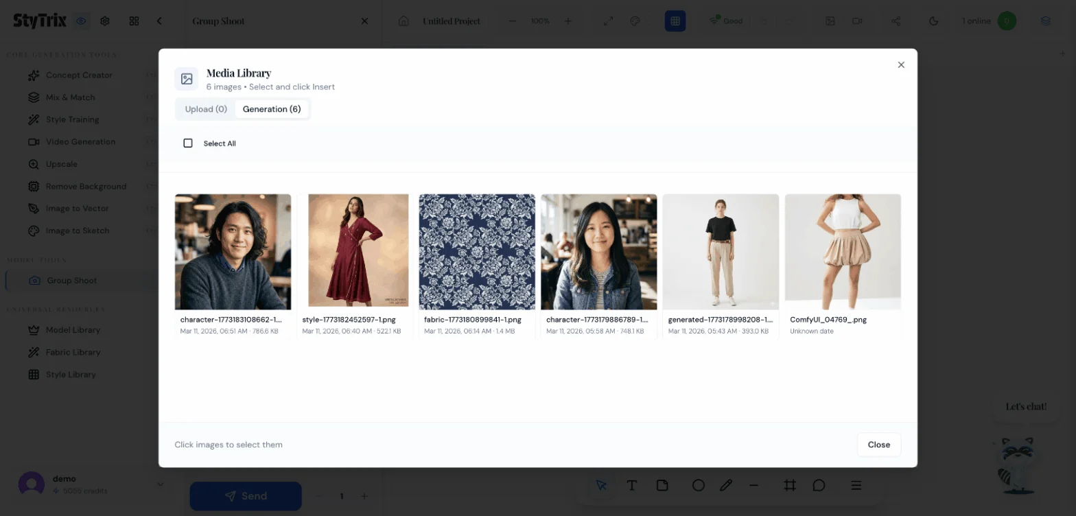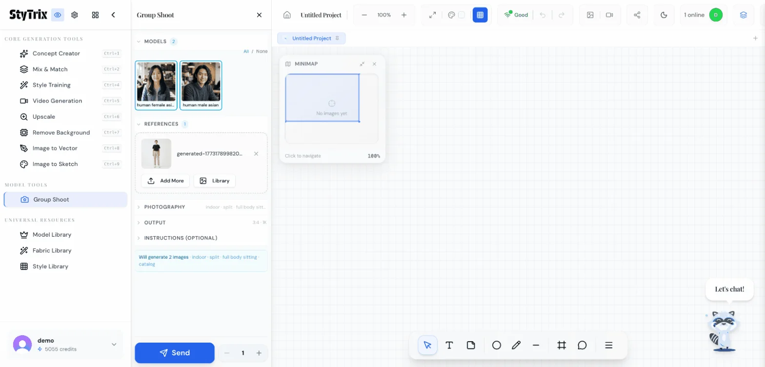 Group Shoot is a batch generation tool under Model Tools in StyTrix. It lets you: