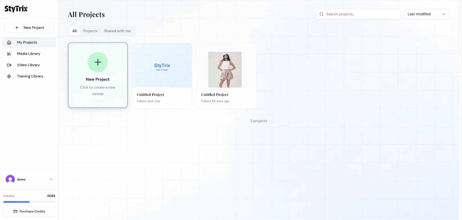 From the Dashboard, click the New Project card to create a fresh canvas.